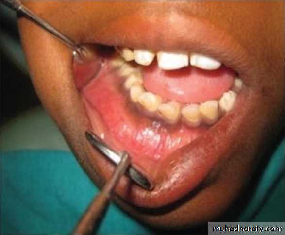 • *Located in the midline of the mandible. *Teeth are vital. Arise from the fissural epithelia.•