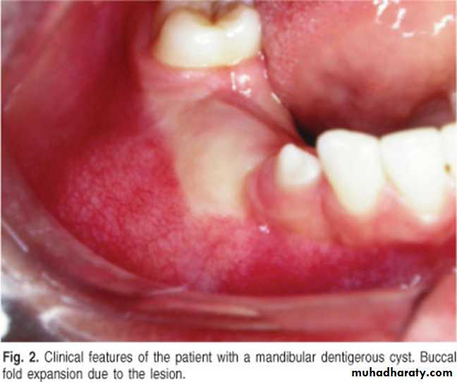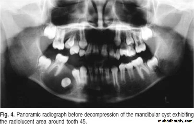 *Shape: is either unicystic or soap bubble-like lesion, Expansile, *Tooth migration is common,teeth in the area are vital.