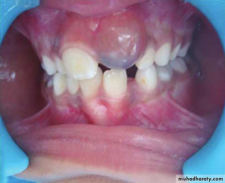 Lesions in midline of maxilla : *Nasoalveolar cyst(nasolabial cyst)