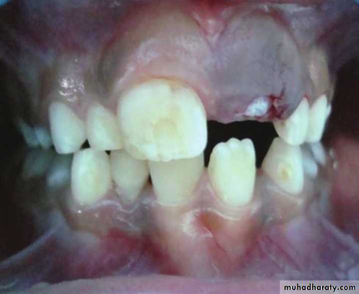 Lesions in midline of maxilla