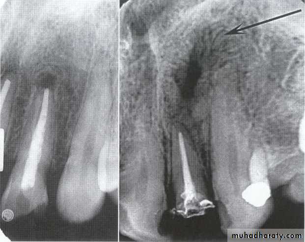 *Radiolucency at apex of endodontically treated tooth