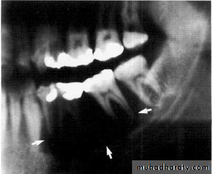 in the ramus with marked expansion andthe displacement of/8.
