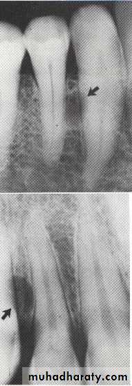 *Radiolucency at apex of vital tooth