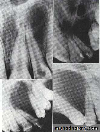 *Adjacent teeth displaced, loosened , often resorbed