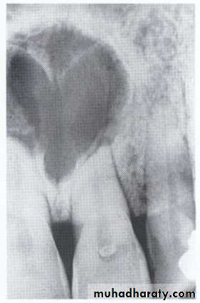 Also called nasopalatine canal cyst, incisive canal cyst, median palatine cyst , or median anterior maxillary cyst.*It is located in the midline between the upper central incisors. Note the superimposed shadow of nasal
