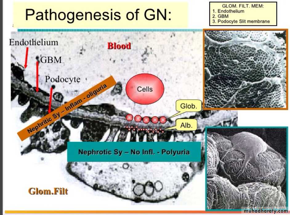 Although little is known about etiologic agents and triggering events, it is clear that immune mechanisms underlie most forms of primary glomerulopathies, and many of the secondary forms.I. Immune-mediated mechanisms; 1. Ab-mediated, a. Insitu immune complex deposition,