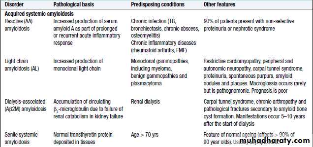 Protein accumulation may be localised or systemic, and the clinical manifestations depend upon the organ(s) affected.