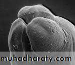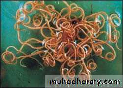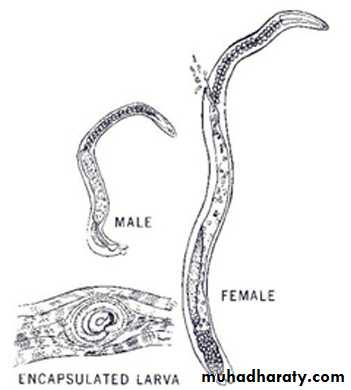 Adult Parasite:The adult worms measure between 10 cm (males) and 18 cm (females) long.