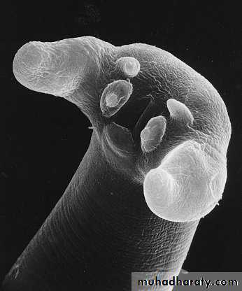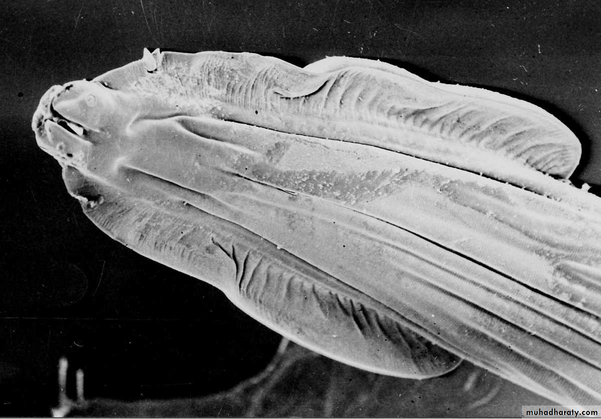 it have spiky cranial and caudal parts, covered by yellow cuticula. The cranial part of the body contains two lateral alae.