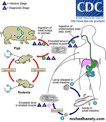 1- T. pseudospiralis (mammals and birds) worldwide.2- T. nativa