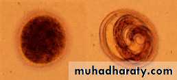 Egg :Egg - 65 µm by 75 µm in diameter with a pitted shell.