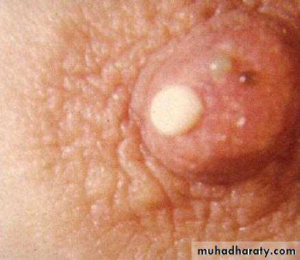Acute mastitis:It is usually a bacterial infection (staph. And strepto coccus).