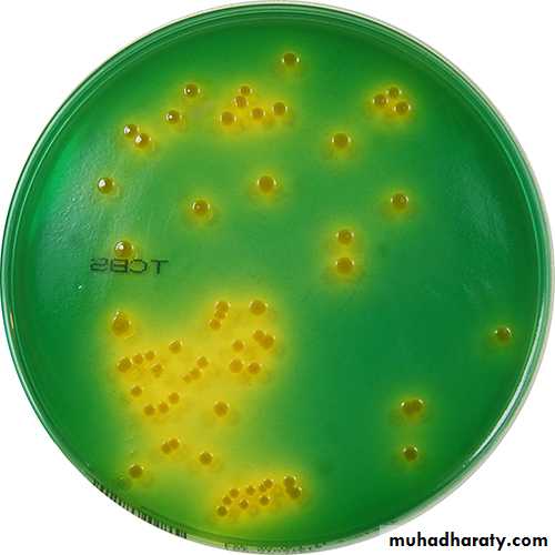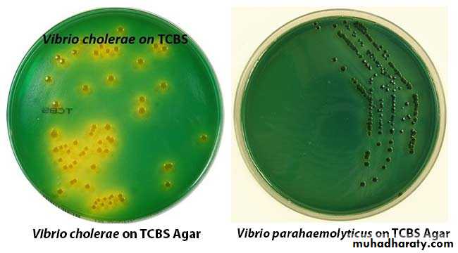 • Alkaline peptone water (enriched media for vibrio).• Thiosulfate-Citrate-Bile salt-Sucrose(TCBS)agar is the selective media for vibrio.