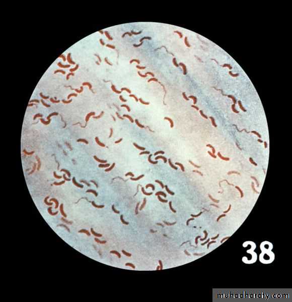 • Gram negative, curved, comma shaped bacilli.• Motile by single polar flagellum.