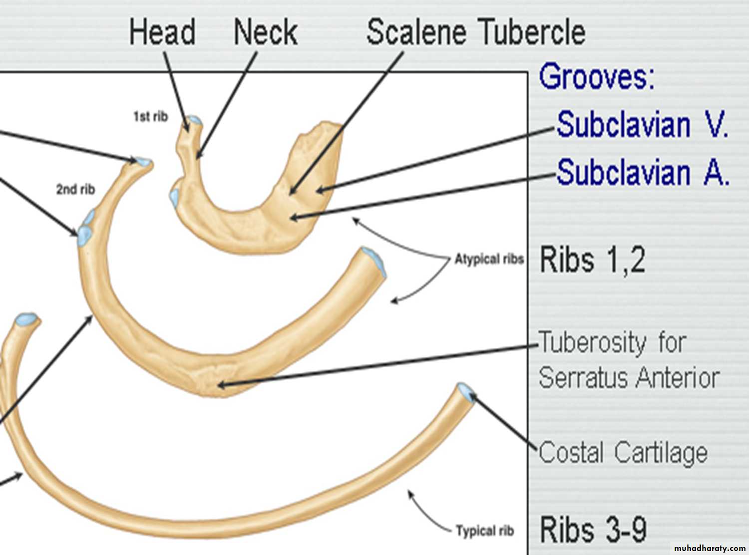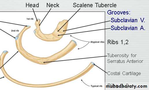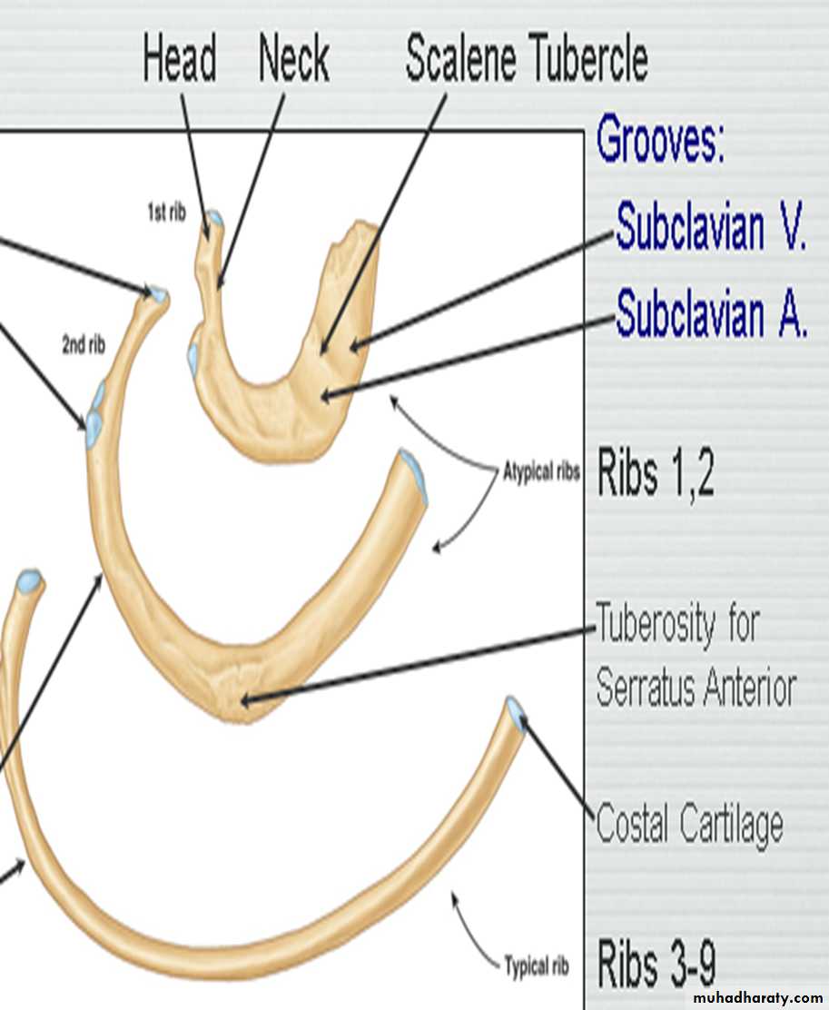 The first rib:- Short, acutely curved, has superior & inferior surfaces .