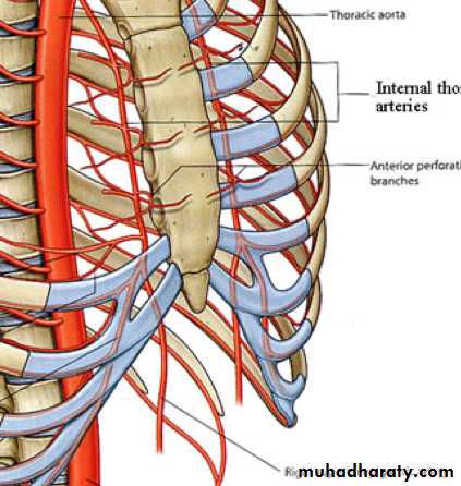 pierce the muscles lateral to the sternum & ends into lateral (large) & medial (small) branches