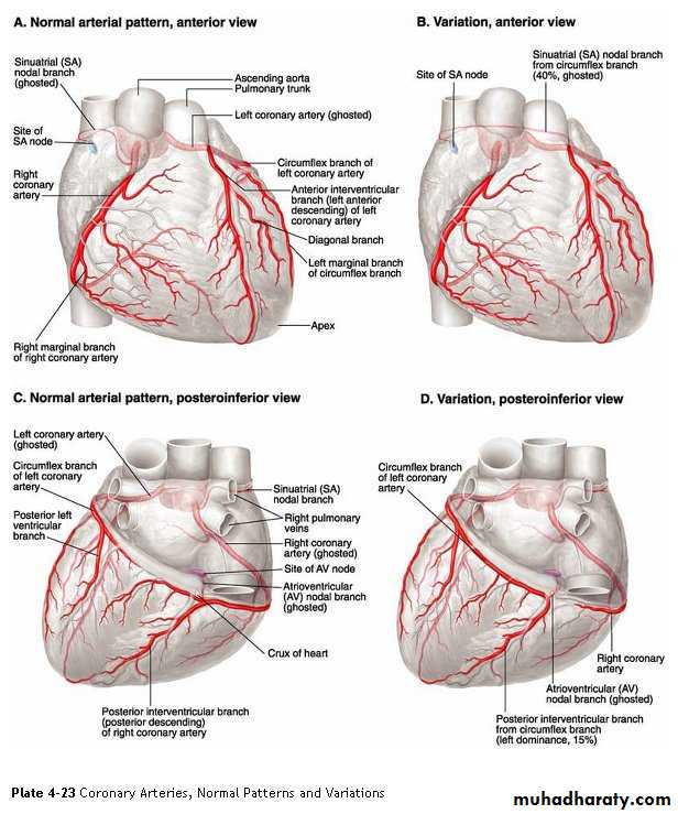 Arterial supply of the heart