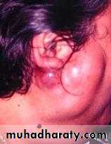 It appears as painless, firm, and mobile masses that rarely ulcerate the overlying skin or mucosa.