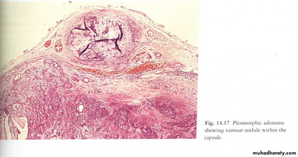 The presence of these different elements accounts for the name pleomorphic tumor or mixed tumor.