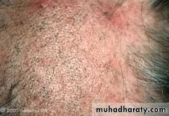 -Hair loss occurs over the entire scalp with telogen effluvium. -The ‘moth-eaten’ appearance in syphilis.