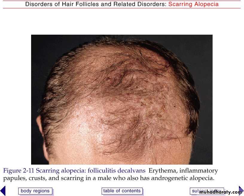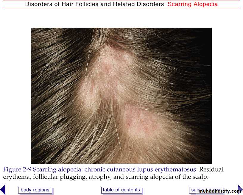 • Discoid lupus erythematosus• Lichen planopilaris (follicular lichen planus)