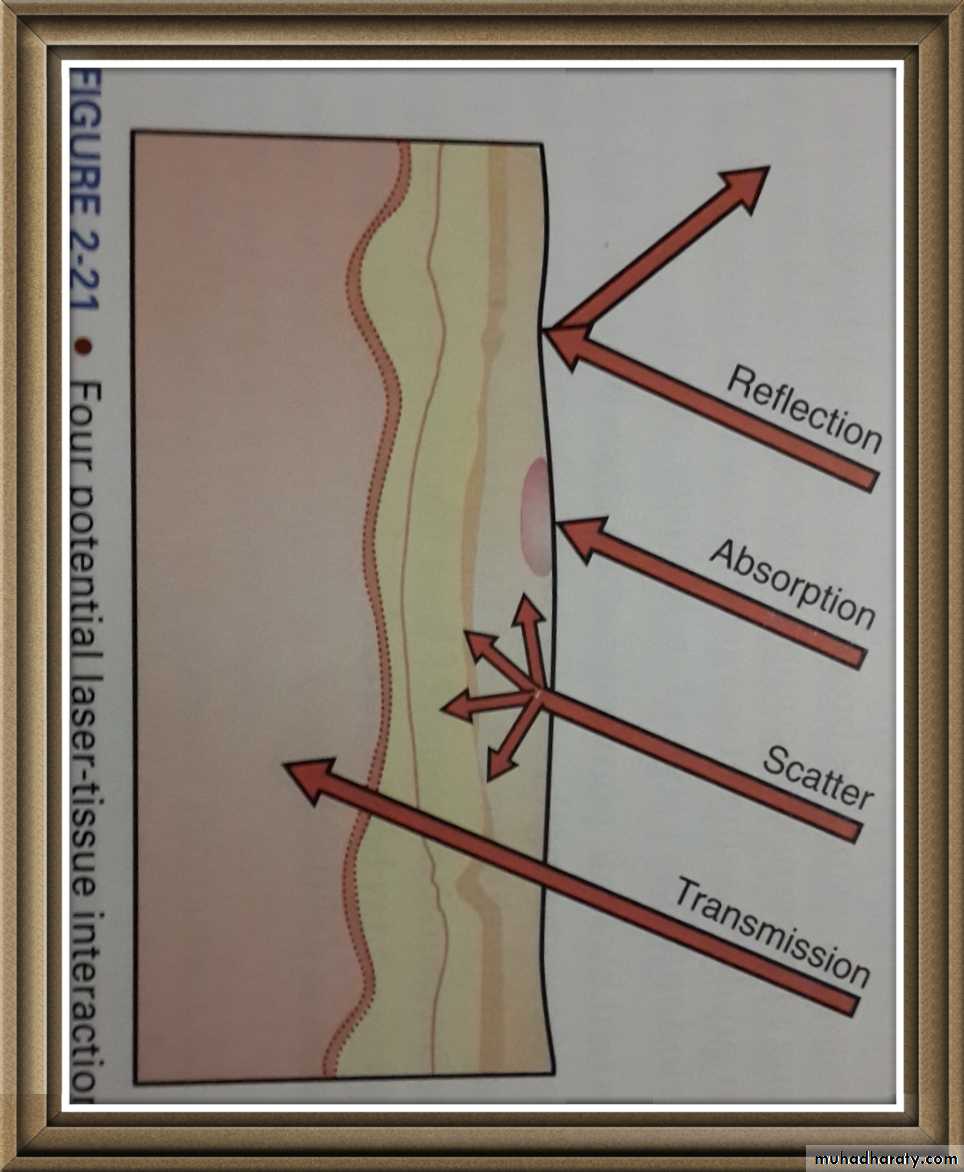 *transmission :is the transmission of the laser energy directly through the tissue with no effect on the target tissue .This effect is highly depended on the wavelength of the laser light