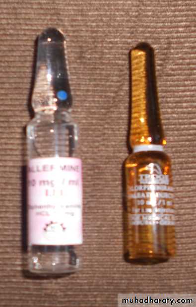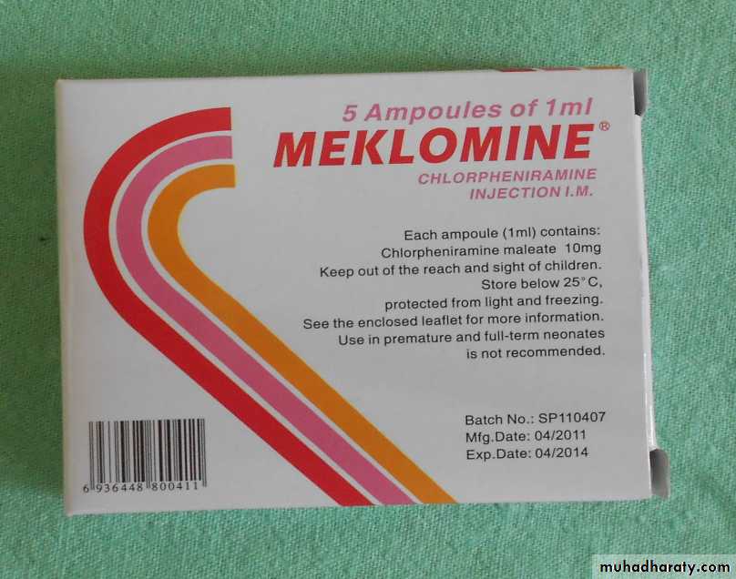 • Potential side effect of most antihistamines is a degree of cortical depression which causes sedation therefore chlorpheniramine is preferred