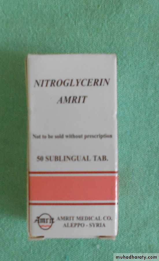 It is used as coronary vasodilators & immediate management of chest painAdministration : sublingual tablet (300micrograme) spry (400micrograme)