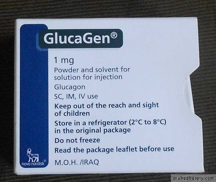 It is indicated in unconscious hypoglycemic patient(less than 2.5 mmol/l) . glucagon increase plasma glucose by stimulating glycogenolysis & gluconeogenesis in liver . An additional action is inhibition of glycogen synthesis & glucose oxidation .