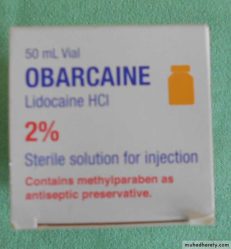 * Lidocain is considered the primary antidysrhythmic drug that developed after myocardial infarction. Over dose of lidocaine produce myocardial ,circulatory & CNS depression.