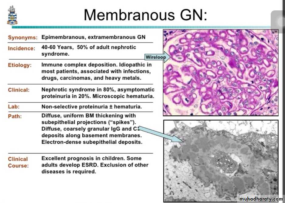 it is a form of chronic immune-complex-mediated disease.The disease is idiopathic in about 85% of cases, and is called primary MGN. However, secondary forms are identified in association with;