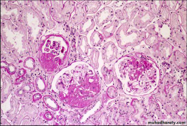 The glomeruli have a lobular appearance