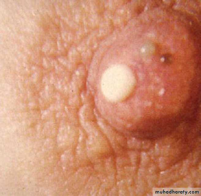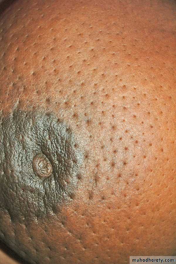 • Nipple retraction and peau d” orange appearance of surrounding skin• Skin of orange is due to dermal edema caused by obstruction of superficial lymphatics by the tumor.