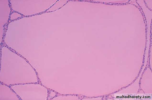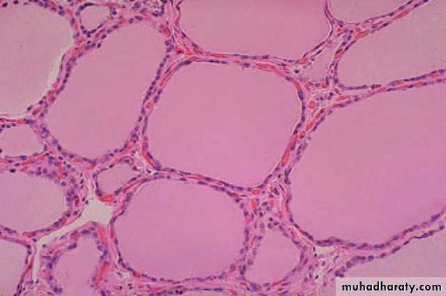 • It reflects impaired synthesis of thyroid hormones, mostly due to dietary iodine deficiency leading to compensatory rise in serum TSH , which in turn causes hypertrophy & hyperplasia of thyroid epithelial cells.• more commonly in females & is particularly likely to develop at a time when the thyroid gland is subjected to extra functional stress as in adolescence or pregnancy .