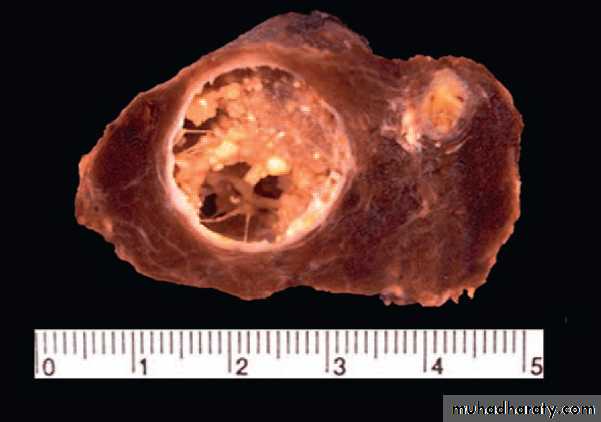 • Cut section: granular + papillary foci.