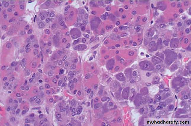 • Hurthle cell adenoma: shows Oxypil or Hurthle cell changes (occasional).