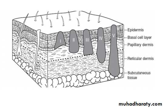 Melanoma thickness grading : Clark level : 1- In situ 2- Papillary dermis 3- Papillary reticular dermis 4- Reticular dermis 5- Sucutaneous Breslow depth (mm) : 1- <1.00 2- 1.01-2.00 3- 2.01-4.00 4- >4.00 5- More depth in mm means more aggressive tumours
