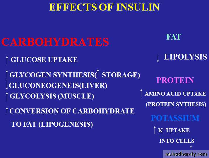 • Increase target tissue sensitivity to insulin by:• reducing hepatic glucose output & increase glucose uptake & oxidation in muscles & adipose tissues.