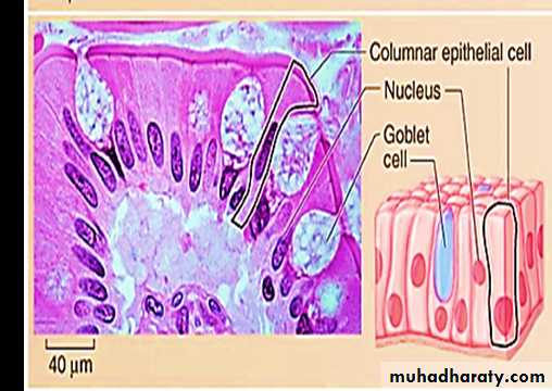 • Simple columnar epithelium may contain mucus- secreting unicellular gland (goblet cells).