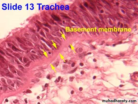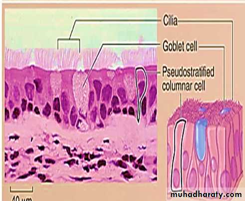 • Most pseudostratified epithelia contain cilia on their apical surface and line the respiratory tract.