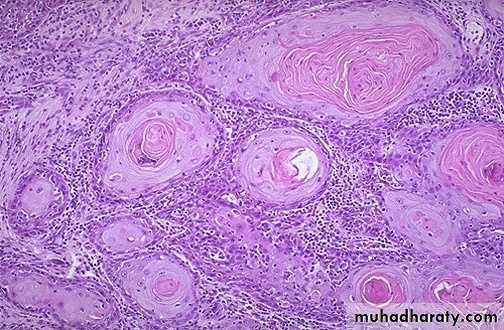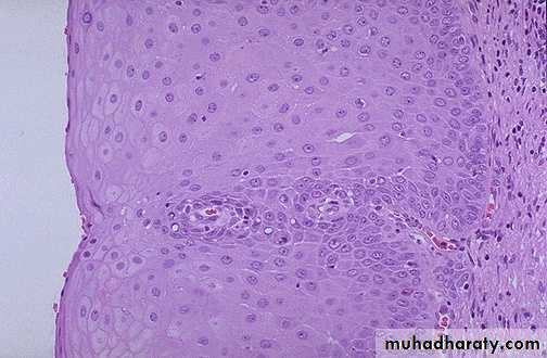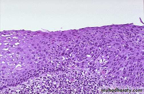 is characterized by the presence within the sq. epithelium of cells showing :Failure of maturation.