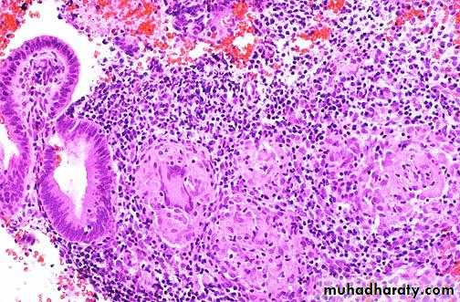 a result of endometrial change .Continued menstrual shedding of the endometrium prevent the disease proceeding to the caseation .