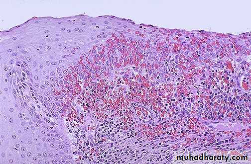 Microscopically :chronic inflammatory cells infiltration ,lymphocytes with predominance of plasma cells ,some degree of fibroblastic & vascular proliferation may be present .