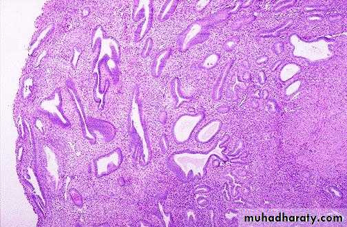 3- Endometrial hyperplasia with architectural atypia ,but no cellular atypia .4- Endometrial hyperplasia with cellular atypia ,which is very difficult to differentiate it from adenocarcinoma.