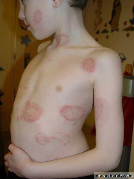 Discoid eczema, psoriasis, candidiasis, pityriasis rosea