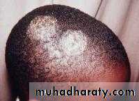 Tinea of the scalpThis is usually a disease of children. The causative organism varies from country to country. Fungi coming from human sources (anthropophilic organisms) cause bald and scaly areas, with minimal inflammation and hairs broken off 3—4 mm from the scalp.