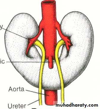 • Horse-shoe kidney: due to fusion of the 2 metanephric cap together at their lower pole in the median plane.