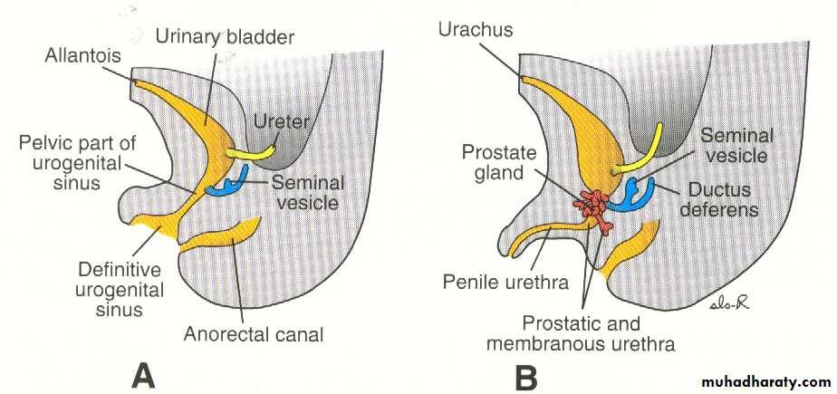 • Openings of the mesonephric duct enter the prostatic urethra and become ejaculatory duct.
