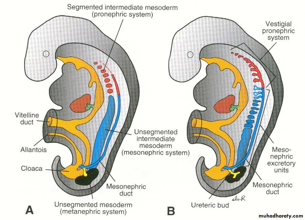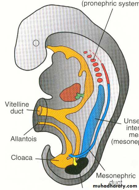 • The lateral end joins the pronephric duct and become termed mesonephric duct (Wolffian duct) which runs along the lateral side of mesonephros.