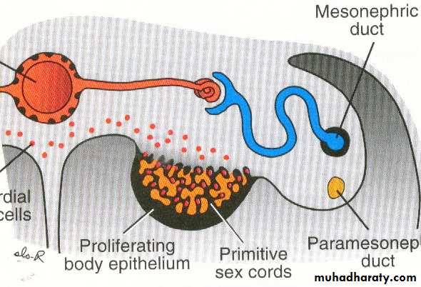 • Each mesonephric tubule become S-shaped with an expanded medial end and a narrow tubular lateral end.